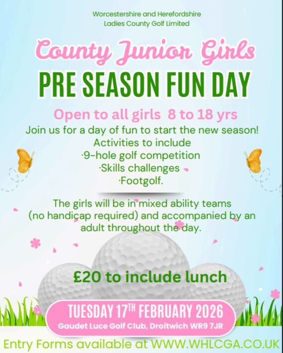 Senior Ladies' Matches have begun. The first round of the Tri -Counties matches for the 'Glass Lady' & Morgan Trophy took place on Monday 12th May 2025 -Results on the Seniors Portal. The 3 Ball Alliance County competition took place at Gaudet Luce Golf Club- Please view the report on the Ladies Section. Sarah Cranton Competed in the Midland South Womens GA Championships at Shifnal GC & won - photo & brief report on the Midland South Portal. Our County 2nd Team have competed twice in the past 2 weeks- results on the Ladies portal and. Our Girls are warming up for their County Championships which will take place on Friday 30th May . Good Luck to all & thank you everyone for representing your County .